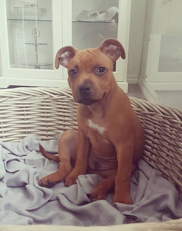 Our home-raised Staffy puppies are ready to bring joy, loyalty, and laughter into your life. Bred for health, heart, and happy homes.